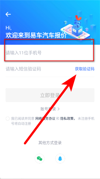 3、在登录页面,输入手机号码,点击获取验证码。