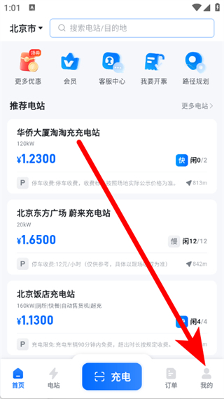 1、打开云快充,在首页点击底部我的,进入我的页面。