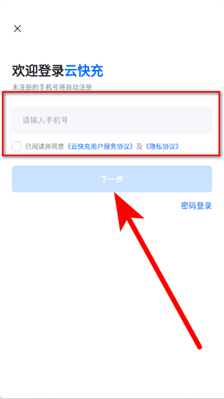 3、在登录页面,输入手机号,勾选协议后,点击下一步。