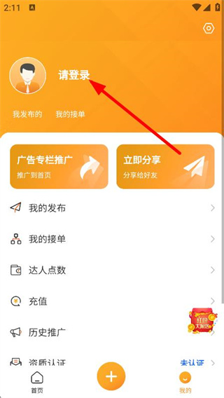 3、然后可以在个人页面,点击请登录,进入登录界面。