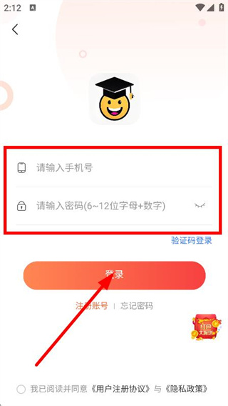 4、在登录界面,输入手机号和密码后点击登录,完成登录操作。