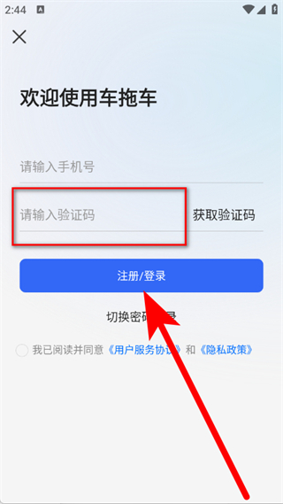 4、输入验证码,勾选后,点击注册登录按钮,完成账号登录。