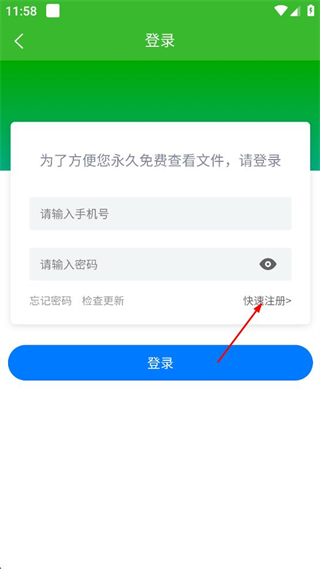 2、在登录界面,点击“快速注册”按钮,进入注册界面。