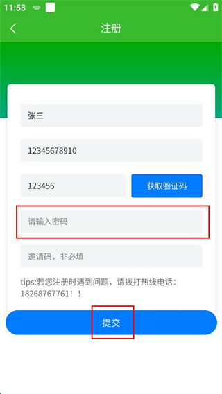 4、填写密码,点击“提交”按钮,完成注册操作。