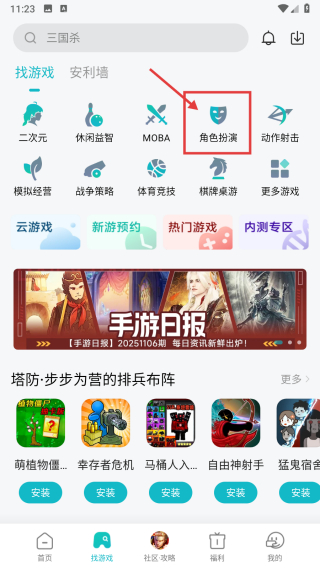 2、在游戏分类页面,点击角色扮演分类标签,进入角色扮演游戏列表页。