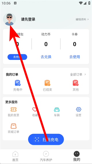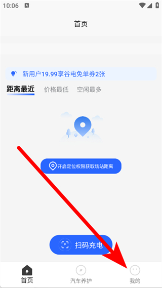 1、打开蔚动力充电,点击底部导航栏我的,进入个人页面。
