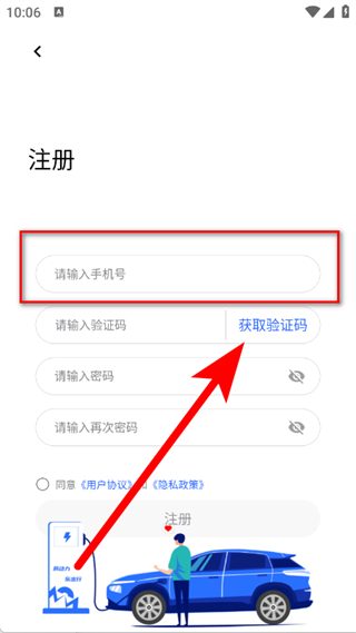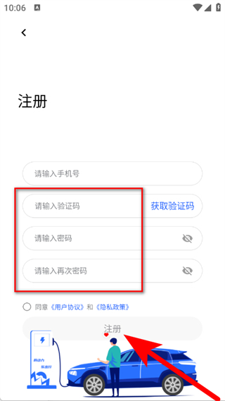 5、输入收到的验证码,设置密码,勾选同意后,点击注册按钮,完成注册流程。