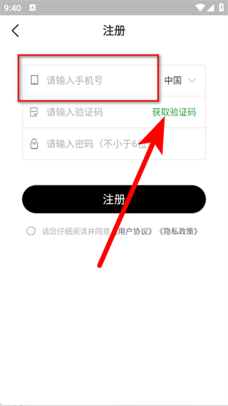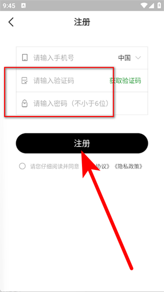 4、在输入框中,输入验证码,设置好密码后,点击注册。
