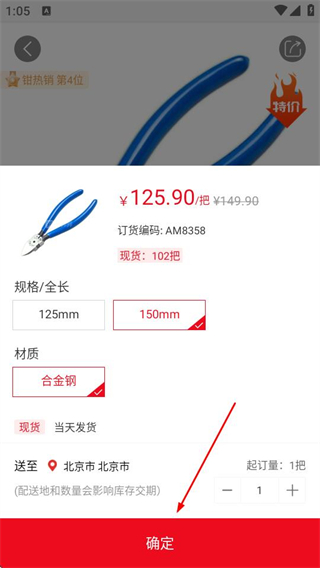 3、在规格选择界面确认规格、数量后点击确定,进入提交订单界面。