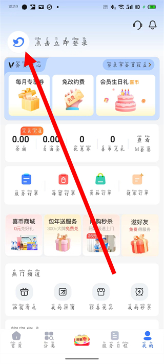 1、打开轻喜到家,点击底部导航栏我的,进入个人中心页面。