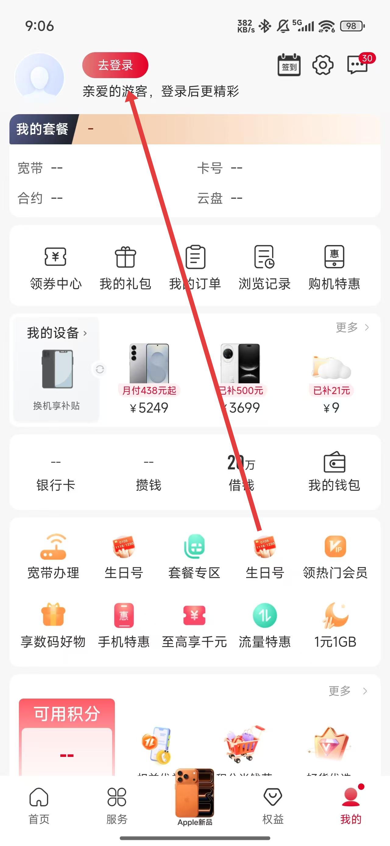 2、在进入到我的主页后,可以点击上方去登录按钮,开始登录操作。