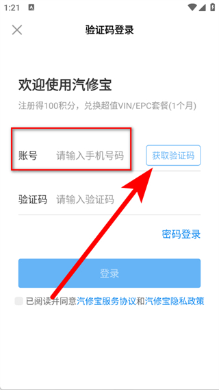 3、在验证码登录页面,输入手机号后,点击获取验证码。