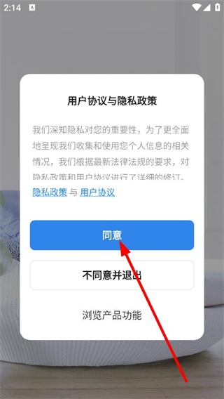 1、在隐私政策弹窗中,点击同意,进入登录注册页面。
