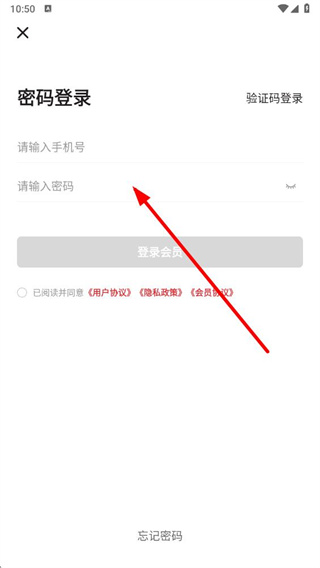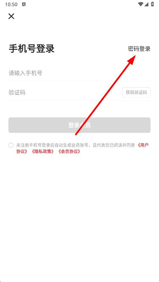 4、在密码登录页面,依次输入手机号和密码,勾选同意相关协议后,点击登录按钮即可完成密码登录。