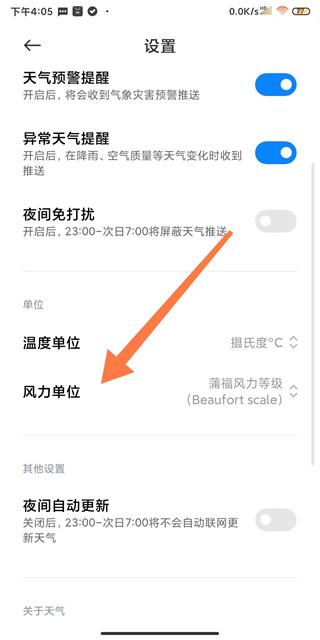4、在弹出的风力单位列表中,选择所需单位,如千米每小时、米每秒等,即可完成设置。