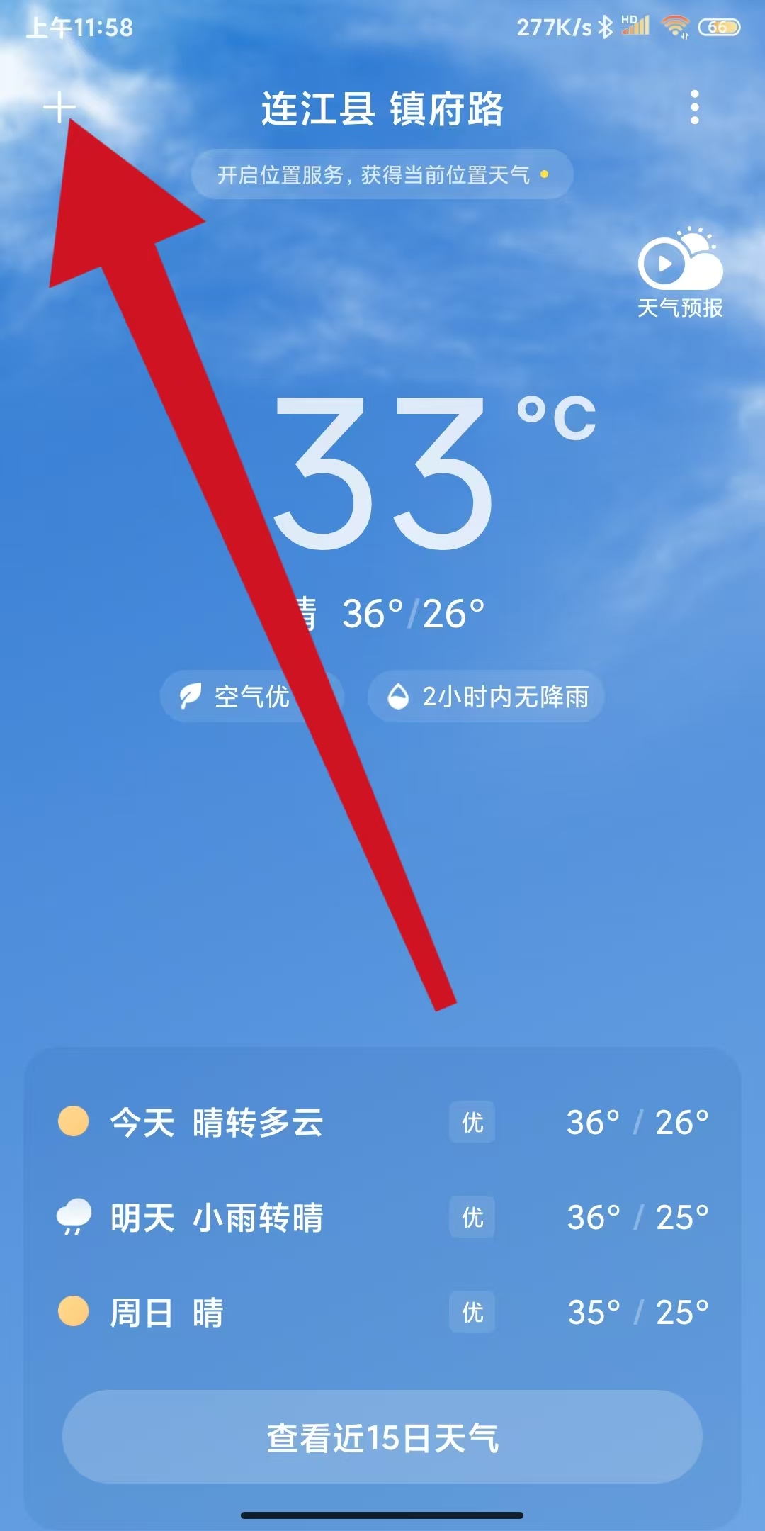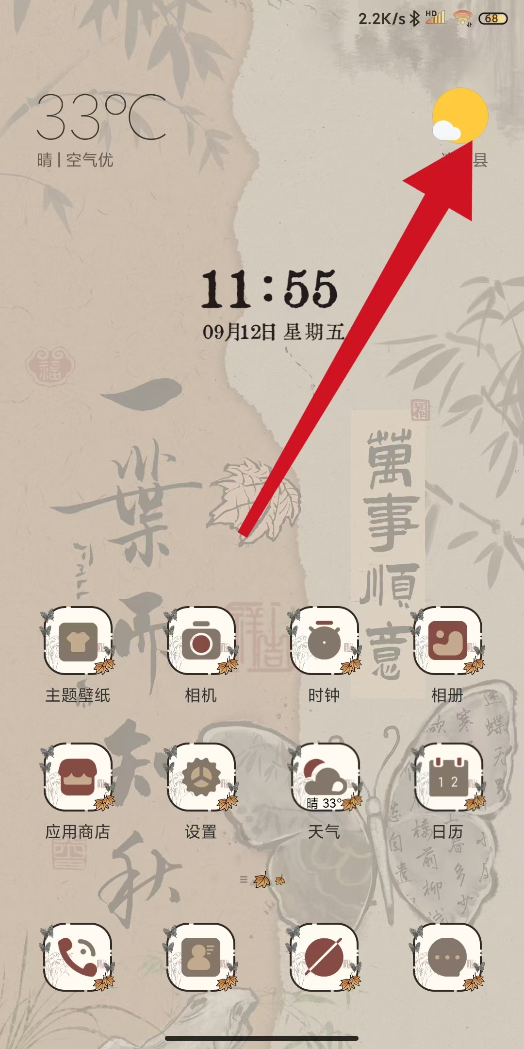 1、在手机桌面找到,点击天气应用进入小米天气界面。