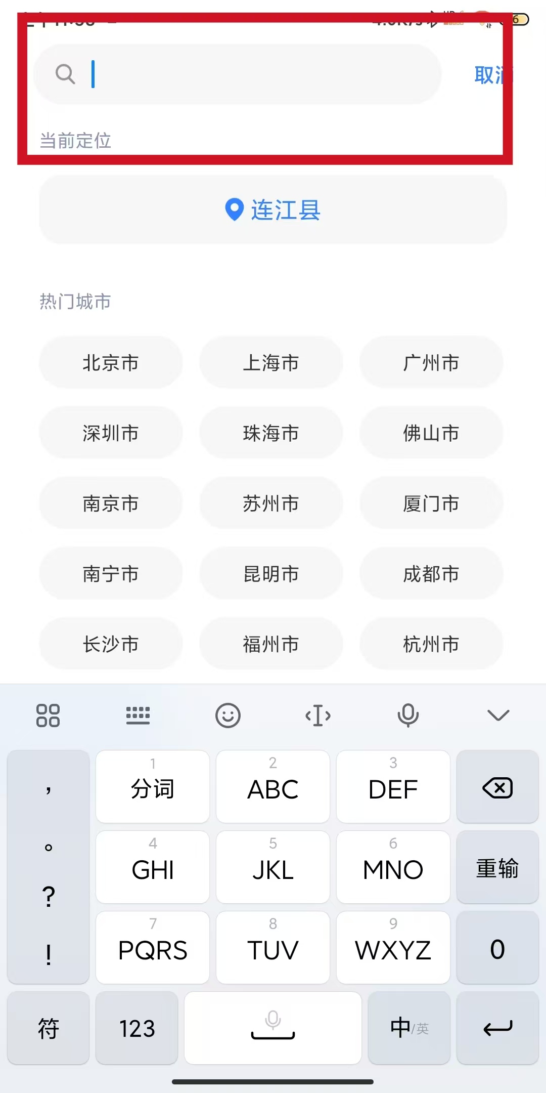 4、输入想要添加的城市名称,然后在搜索结果中选择对应的城市即可添加。