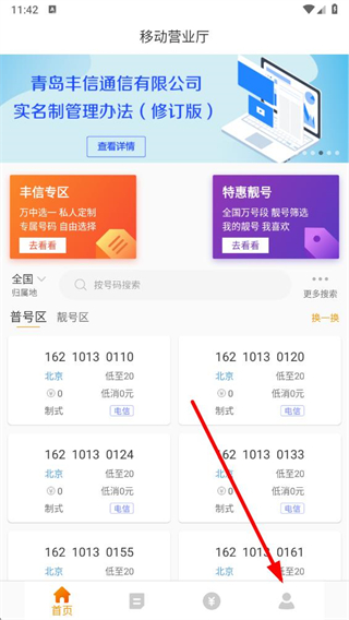 1、在移动营业厅首页,点击右下角人形图标进入个人页面。