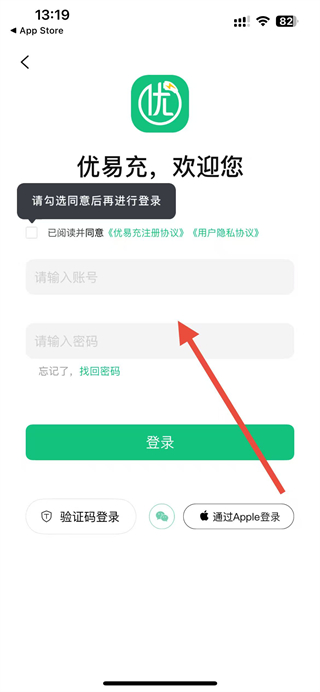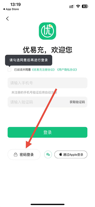 3、在密码登录界面,输入账号和密码,勾选同意协议后点击登录按钮完成登录。