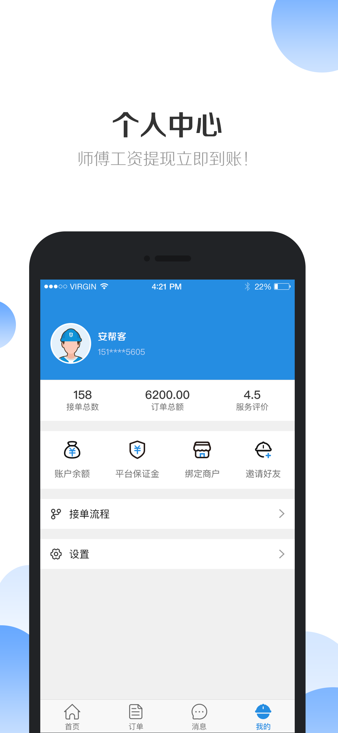 安帮客师傅端app是一款为安装师傅打造的在线接单软件,海量订单让你接单不愁,随时随地上门服务,轻松赚钱。