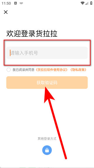 3、在登录页面,输入手机号,点击获取验证码。