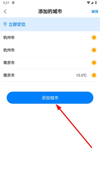 2、在添加城市页面,点击添加城市按钮,进入城市搜索页面。