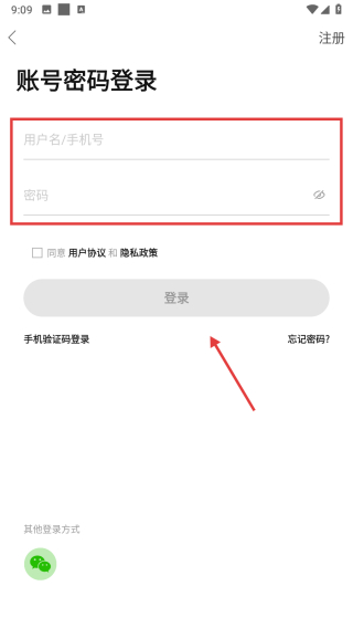 4、在账号密码登录页面,输入用户名/手机号和密码后点击登录按钮,完成账号密码登录操作。