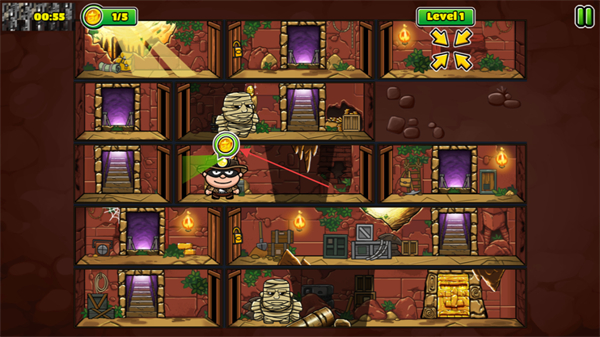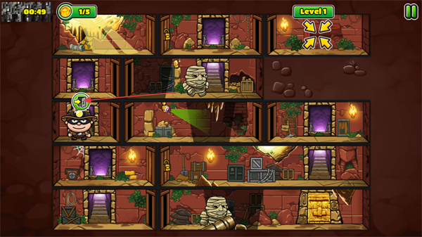 采用经典卡通画风,鲍勃形象俏皮可爱,遗迹场景与陷阱设计色彩明快,没有压抑的视觉感受,让紧张的潜行解谜过程多了一份轻松感,适配不同年龄段使用者。