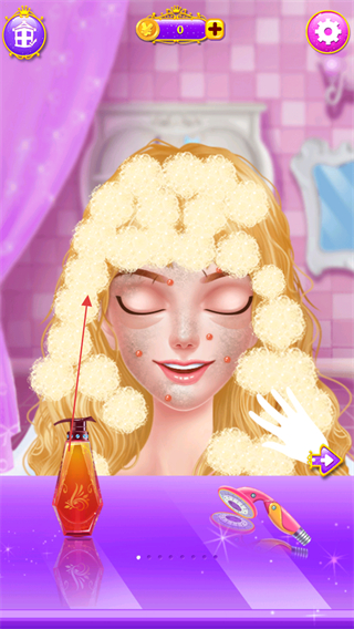 1、给公主涂抹洗发产品,护理头发,打造柔顺发质。