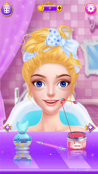 3、使用美妆工具,如带彩球的工具,为公主进行面部细节修饰。