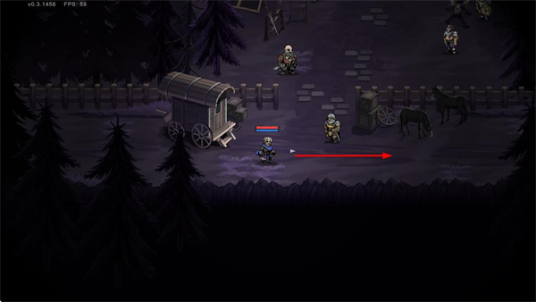 1、在森林场景操控角色向右移动,与NPC交互,查看马车等场景元素,熟悉地图布局。