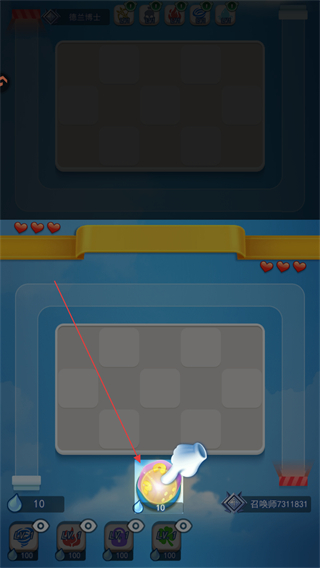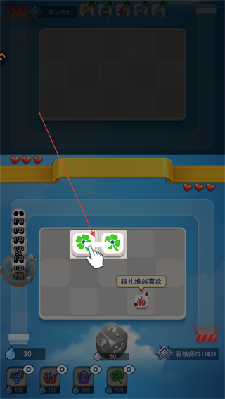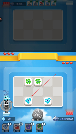 2、道具放入后会生成对应图案如三叶草、旋风,相同图案可合并升级。