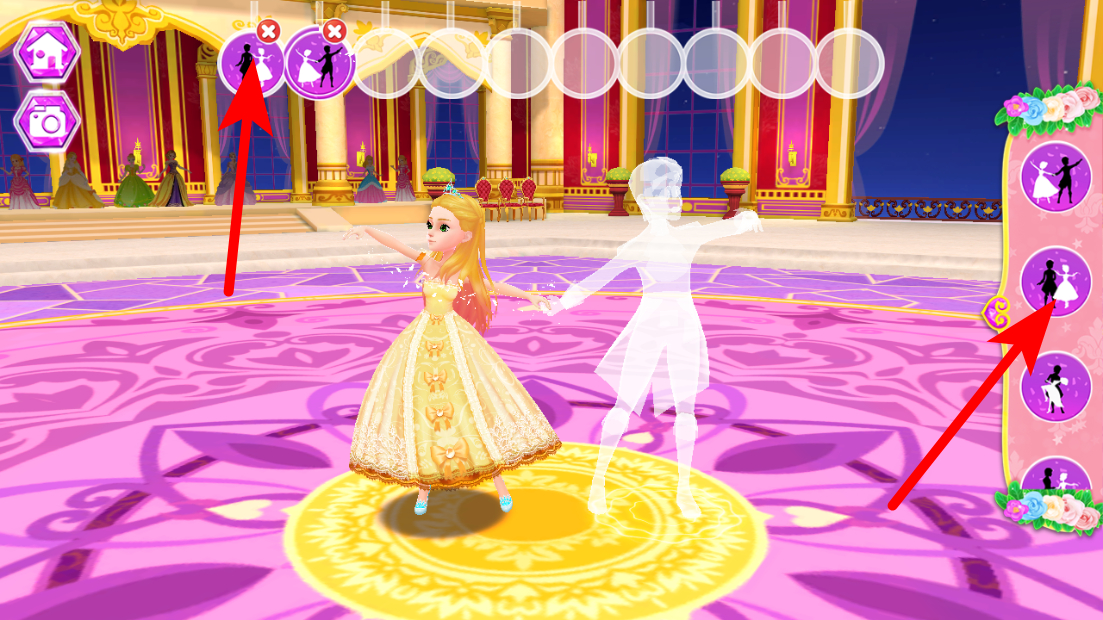 4、在舞会界面,选择右侧舞蹈动作,即可开始梦幻舞会。