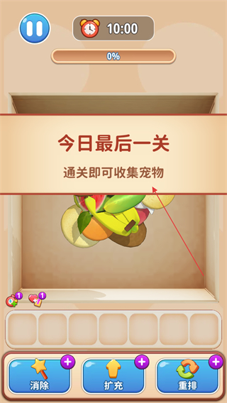 4、持续收集消除物品,待关卡内所有堆叠物品清理完毕,收获胜利。