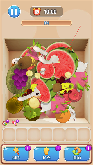 收集栏格子有限,需要判断物品收集的先后顺序,合理分配格子空间,在休闲中融入轻度策略,提升游玩的趣味性。