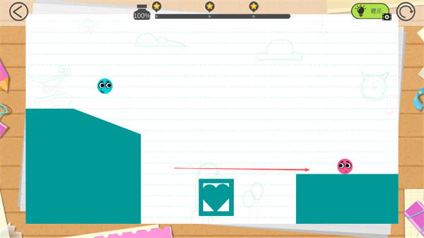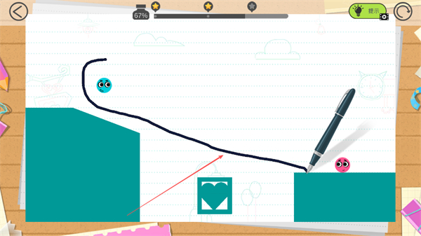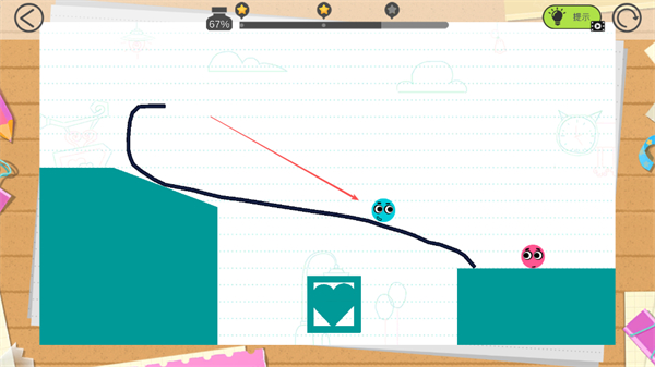 4、蓝色小球沿绘制的线条滑动,向粉色小球移动,尝试与粉色小球相遇,完成关卡。