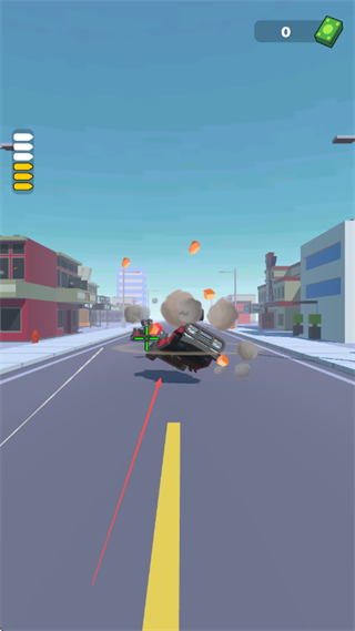 1、操控车辆在公路上行驶,撞击敌人车辆,使其爆炸,积累分数。