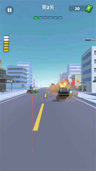 2、在第2关中,瞄准敌人车辆进行撞击,消灭敌人,同时躲避攻击。