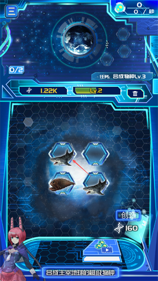 1、点击相同的鲲进行合成,生成更高级的物种。