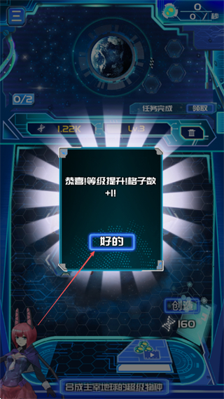 3、等级提升后,点击好的确认,领取格子数+1的奖励。