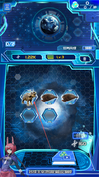 4、继续合成不同的鲲,进化出更高级的物种如三角龙形态,完成任务并领取奖励。