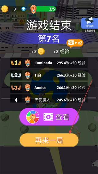 3、游戏结束后,根据排名获得金币和经验奖励,如第7名可得+2金币和+2经验。