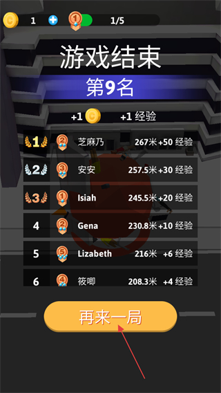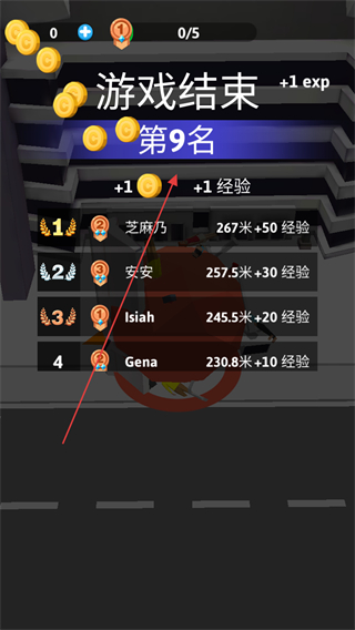 3、游戏结束后,根据排名获得金币和经验奖励,如第9名可得+1金币和+1经验。