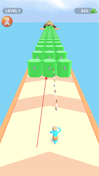 2、躲避障碍物,与红色人群碰撞合并,壮大自身人群规模,积累金币。