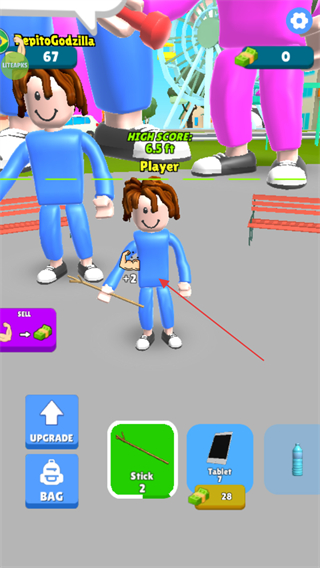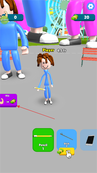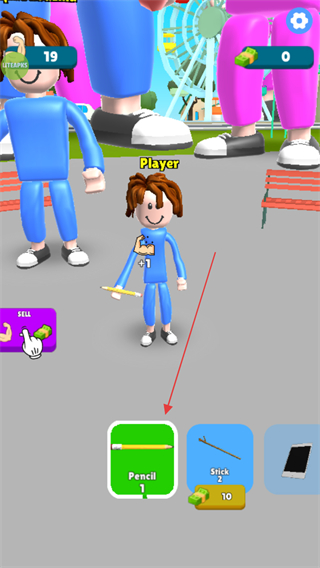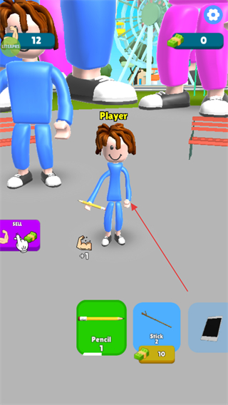 1、操控角色手持铅笔,提升肌肉值,增加身高。