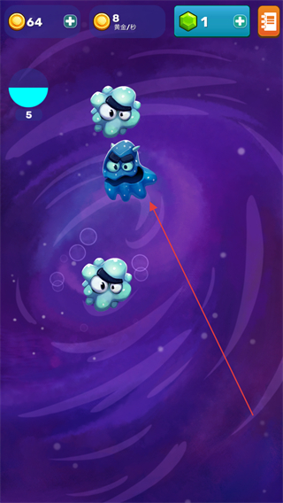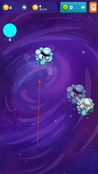 1、操控蓝色泡泡状怪物移动,收集气泡积累分数。
