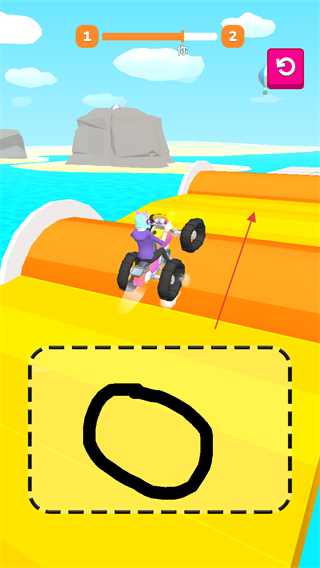 无固定轮胎样式限制,可自由用画笔绘制任意形状的涂鸦轮胎,不同形状轮胎的行驶速度、抓地力不同,影响赛道通行效果。