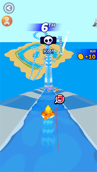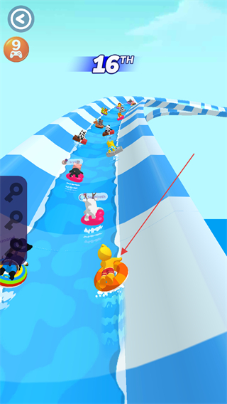 1、操控角色在水上滑梯赛道上滑行,与其他选手竞争排名如从16TH提升到6TH、1ST。