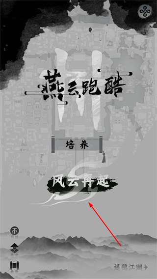 1、进入游戏主界面,点击风云再起按钮,开始江湖跑酷之旅。
