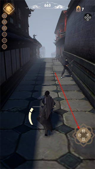 3、遇到敌人时,点击释放奇术按钮,施展技能击败敌人,继续前进。